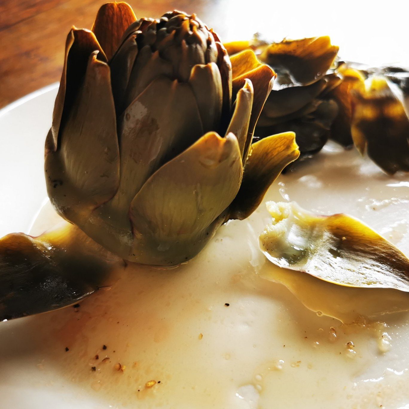 There are many claims as to the health benefits the globe artichoke. They are packed with atioxidants quercertin, rutin, anthocyanins, cynarin, luteolin, and silymarin. The last, silymarin, is a controversal treatment for liver disease and cynarin is what protects you from the bad cholesterol in your diet. It is claimed the globe artichoke is high in vitamin C, folate to protect from birth defects, potassium to help counter the sodium in your diet and reduce blood pressure. Lastly they are very high in fibre which is the best thing for your gut and also regulates blood sugar. With all that going for them we call artichoke season our annual spring cleanse. Our little patch of 12 plants produces around 144 artichokes and they grow in threes around the first central flower bud. By mid December its all over.